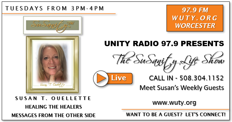 In 2020, my SuSanity Life Clinic opened its doors in Sturbridge, Massachusetts. Between client visits, I consult and teach. Every Tuesday, I host an interactive radio shows on Unity Radio 97.9. As my schedule permits, I host public and private Evenings with Susan “Messages” events, offering closure to guests who have lost loved ones, with guided intuitive readings.